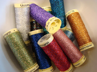 Flatlockssömmen är fin att använda med t ex virkgarn eller tråden metallic effect som visas på bild nr 2.