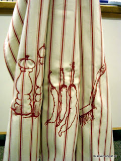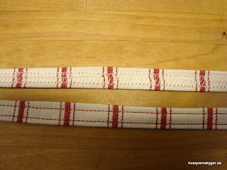 Sömmen som är sytt över den röda banden finns på de flesta modeller, jag valde att ändra stygnlängd och stygnbredd så jag fick ”fina” fyrkanter.