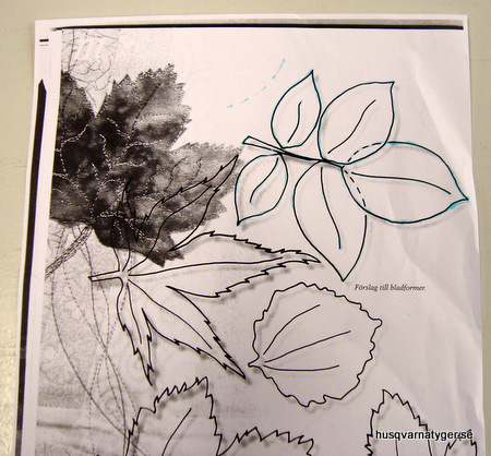 Lägg sedan mönstret på det tyg som du vill överföra till och fyll i samma konturer en gång till. När du är klar håller du bara överföringspappret under rinnande vatten så försvinner det mönster du ritat och du kan använda det till andra motiv,